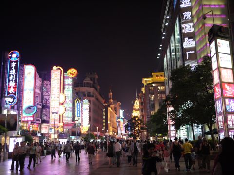 いつも観光客でごったがえしている南京東路です。